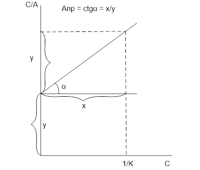 Уравнение Лэнгмюра, преобразованное в линейную форму имеет вид: