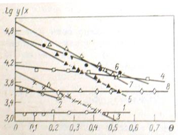 почти одинакова. Сорбция трилона Б из воды – типичный случай полимолекулярного поглощения с преобладающим взаимодействием во втором и последующих слоях над взаимодействием в первом слое.