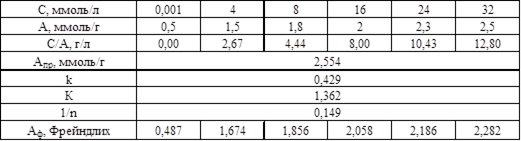 Адсорбция нитробензола и анилина на древесном угле описывается уравнениями Фрейндлиха соответственно