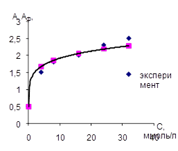 График зависимости имеет степенной вид. И значения адсорбции А тем больше, чем больше К . Следовательно, величина адсорбции анилина будет меньше, чем нитробензола. Таким образом, если весь нитробензол будет восстановлен до анилина, что величина адсорбции уменьшится.