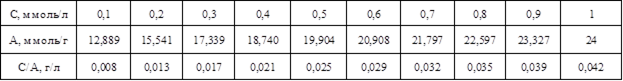Изотерма адсорбции бензойной кислоты на активном угле БАУ при 25°С описывается уравнением Лэнгмюра