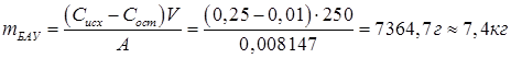 . Рассчитать массу активного угля, обеспечивающего очистку 0,25м3