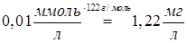 раствора от бензойной кислоты до ее остаточной концентрации 0,01 ммоль/л, если исходная концентрация бензойной кислоты составляет 0,25 ммоль/л. Какова остаточная концентрация (мг/л