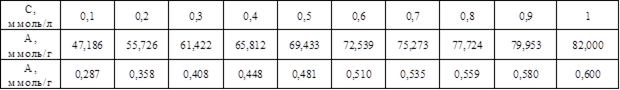 Чтобы представить это наглядно, возьмем область равновесных концентраций в пределах 0,1 – 1,0 ммоль/л и построим изотермы адсорбции: