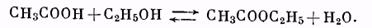 Реакции этерификации обратимы и, следовательно, ограничены состоянием равновесия. Превращение эквимолекулярных количеств кислоты и спирта в теоретически вычисленное количество сложного эфира по причине обратимости реакции невозможно. В результате реакции образуется некоторое максимальное количество эфира (которое всегда ниже теоретического) и остаются непрореагировавшие спирт и кислота. Например, при нагревании с обратным холодильником эквимолекулярных количеств уксусной кислоты и этилового спирта в реакцию вступает лишь 2/3 г-мол каждого компонента, поэтому максимальный выход эфира в этих условиях составляет лишь 2/3 теоретического, т. е. 66,7%.