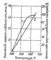 2. Количество реагирующего кислорода сначала быстро растет с повышением температуры – при 360°С в реакцию вступает более 80% исходного кислорода. Выше этой температуры кривая расхода кислорода