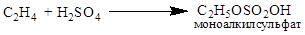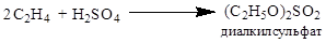 4. Получение этилового спирта сернокислотной гидратацией. Концентрированная серная кислота способна реагировать с этиленом, образуя моно- и диалкилсульфат: