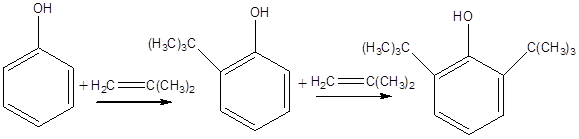 2,6-Дитретбутилфенол образуется в небольших количествах при алкилировании фенола изобутиленом в присутствии обычных кислотных катализаторов, но его трудно выделить из реакционной массы.