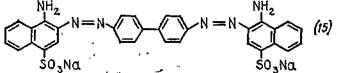 Дальнейшие работы привели к появлению красителей на основе И-кислоты (16, звездочкой на рисунке показано положение вступающей азогруппы), производных стильбена и др.