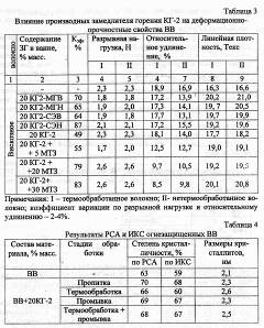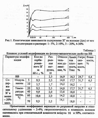 данные по исследованию взаимодействия ЗГ с ВВ и их влиянию на структуру и свойства волокон;