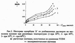 Для достижения поставленной цели решались следующие задачи: - определение термохимических свойств ЗГ; - исследование влияния на кинетику сорбции ВВ концентрации ЗГ, температуры и модуля ванны, определение характера сорбции;
