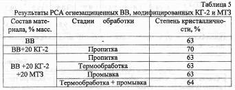 разработаны параметры и технология модификации, обеспечивающие получение ВВ пониженной горючести с сохранением комплекса эксплуатационных свойств;