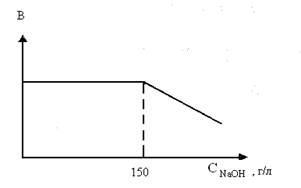 На рис. 1. приведена зависимость выхода гидроксида натрия от концентрации его в выходящем щелоке. Таким образом, оптимальными условиями процесса электролиза водного раствора хлорида натрия с железным катодом являются: