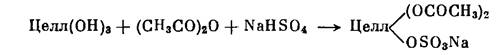 При этом методе этерификации выделения кислоты не происходит, однако образование свободной серной кислоты может иметь место в результате взаимодействия серного ангидрида с небольшим количеством воды, всегда имеющимся в целлюлозном материале.