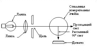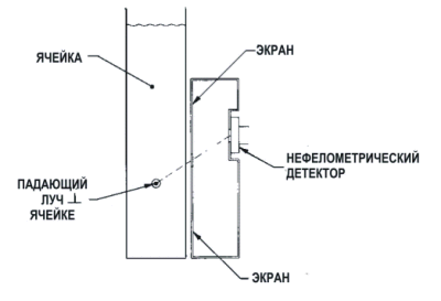 Рис. 2. В нефелометрических измерениях мутность определяется по свету рассеянному под углом 90°