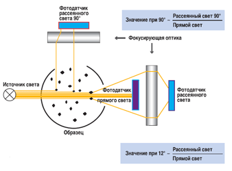 Для регистрации рассеянного света используются турбидиметрические системы, работающие по различному принципу:
