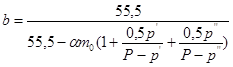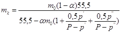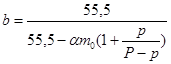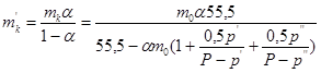 - мольные концентрации хлорида щелочного металла в исходном растворе и католите, соответственно;