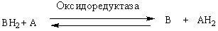 Окисление протекает как процесс отнятия атомов Н (электроном от субстрата, а восстановление – как присоединение атомов Н (электронов) к акцептору. Если обозначить рецептор буквой А, а субстрат В, то уравнение реакции окисления–восстановления при участии оксидоредуктаз примет такой вид: