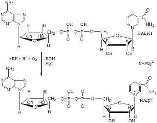 Число известных процессов окисления спиртовых групп до карбонильных с помощью никотинамидных коферментов превышает две сотни. Например, важный промежуточный этап окисления глюкозы – это окисление глицеральдегид-3-фосфата, который протекает по реакции и приводит к образованию смешанного ангидрида 3-фосфоглицериновой кислоты и ортофосфорной кислоты – 1,3-дифосфоглицерата.
