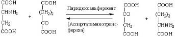 Пиридоксальфермент катализирует реакцию переаминирования. В результате серии реакций, включающих в себя непременное образование фермент-субстратных комплексов, аспаргиновая кислота переходит в щавелево-уксусную кислоту, а кетоглутаровая – в глутаминовую. Это выражается следующим суммарным уравнением: