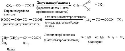 В природе широко распространены декарбоксилазы кетокислот и аминокислот, катализирующие реакции по следующим схемам: