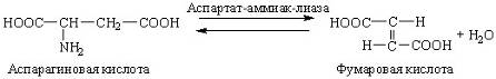 Другую важную группу лиаз составляют углерод-кислород-лиазы (гидролиазы), ускоряющие реакции гидратирования и дегидратирования органических соединений. В качестве представителя гидро-лиаз приведем фумарат-гидратазу: