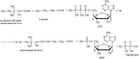 В качестве примера действия лигазы можно привести синтез пантотеновой кислоты из