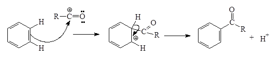 Наиболее распространенной реакцией С-ацилирования является открытая еще в XIX веке реакция Фриделя‑Крафтса. Механизм этой реакции достаточно долго оставался загадкой, однако теперь является точно установленным, что реакция протекает по механизму электрофильного замещения.