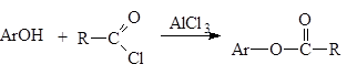 Фенолы не этерифицируются непосредственно карбоновыми кислотами. Сложные эфиры получают действием ангидридов и хлорангидридов карбоновых кислот.