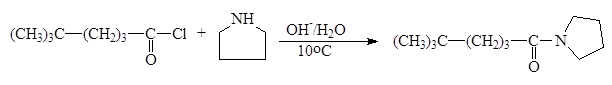 Образовавшаяся кислота HL связывает эквивалентное количество непрореагировавшего амина. Данный метод становится неэкономичным, если амин трудно синтезировать или он представляет собой дорогостоящий реактив. По этой причине амины часто ацилируют при помощи так называемой реакции Шоттена-Баумана, которая сводится к взаимодействию между амином и ацилирующим агентом в присутствии водного раствора едкого натра. Реакция состоит из двух стадий, в процессе которых амин успешно конкурирует с гидроксид-ионом и ацилируется, а гидроксид-ион связывает образующую кислоту (HCl).
