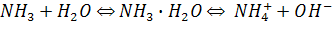 Виникнення гідроксид - іонів створює лужну реакцію розчину аміаку у воді. Константа іонізації невелика (рК 5). В умовах низьких температур з водних розчинів аміаку можна виділити кристалогідрати NH3 ·Н2 О (tпл = -77 °С), 2NН3 ·Н2 О (tпл = -78 °С) і NН3 ·2Н2 О (tпл = -97 °С).Кристалогідрати складаються з ланцюжків молекул аміаку і води, зшитих водневими зв'язками в тривимірну сітку, в яких відсутні структурні мотиви NН4 ОН. Це означає, що так званий гідроксид амонію не існує як хімічний індивід, так як і немає гідроксиду оксонія ОН3 ОН і гідроксиду фторонія FН2 ОН. Таким чином, водні розчини аміаку володіють основними властивостями не за рахунок утворення уявної сполуки NН4 ОН, а внаслідок виключно вираженої донорної активності атома азоту в NН3 [5].