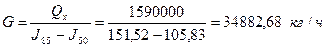 В = 15,42·106 /(44228,24×0,76) = 460,16 кг/ч