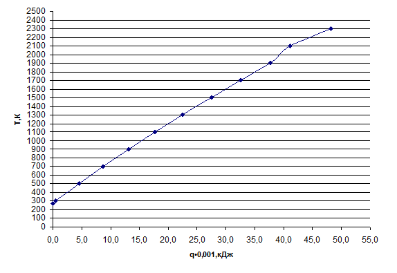 Примем Тn =1050 К и определим по графику q-Т: qТ n = 15000 кДж/кг.