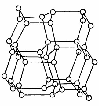Две основные разновидности углерода - графит и алмаз - существенно отличаются по свойствам. Мягкий графит имеет слоистое строение (рис. 2).Все атомы углерода находятся здесь в состоянии sp2-гибридизации: каждый из них образует три ковалентные связи с соседними атомами, причем углы между направлениями связи равны 120°. Графит электропроводен и хорошо раскалывается по плоскости. В обычных условиях графит и является наиболее устойчивой модификацией. Переход графита в алмаз возможен при очень высоких давлениях (порядка 125000 атм) и температурах (около 3000 °С). Однако исследование этого процесса сначала с теоретических позиций, а затем экспериментальным путем показало, что в присутствии катализаторов (железо, платина) графит превращается в алмаз уже при давлении 60000—80000 атм и температуре 1400—1600 °С. В настоящее время налажено производство искусственных алмазов для технических целей, причем размеры их обычно колеблются от 0,5 до 4 мм; в отдельных случаях удается получить и большие экземпляры. Структура алмаза (рис. 1) типично тетраэдрическая; атомы углерода прочно соединены за счет перекрытия sp3-орбиталей. Хотя в обычных условиях алмаз нестабилен, но практически он может сохраняться неопределенно долгое время. При сильном накаливании алмаза происходит его постепенная графитизация.