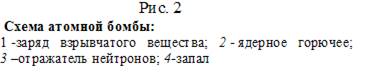 обеспечивает взрыв обычного взрывчатого вещества 1, это приводит в соприкосновение куски ядерного горючего 2,
