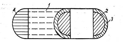 Однако, если два куска делящегося материала, которые в сумме составляют критическую массу, находятся на каком-то расстоянии друг от друга, то взрыва не происходит. Достаточно соединить эти куски и произойдет взрыв. После сказанного будет понятен принцип устройства атомной бомбы (рис. 2): запал 4