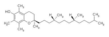 Із числа жиророзчинних АО-мембранопротекторів найважливішу роль відіграє α-токоферол – вітамін Е . Молекула токоферолу складається з бензольного ядра з гідроксильною групою, що виконує АО-функцію, і бічного ланцюга молекули, що здійснює взаємодію молекули токоферолу з мембранними структурами [3], зокрема, з вуглеводневим ланцюгом арахідонової кислоти, що підвищує ефективність АО-захисту мембран: