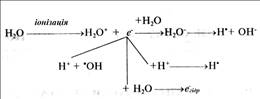 Мал. 12 - Схема первинних реакцій радіолізу води