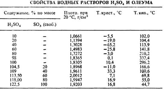 Растворы SO3 в серной кислоте называются олеумом. Они образуют два соединения: H2 SO4 ·SO3 и H2 SO4 ·2SO3 [5].