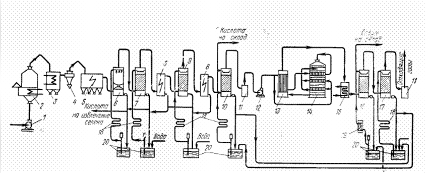 Получение газовой серы. Газовая сера является отходом процесса очистки газов цветной металлургии, нефтепереработки, попутных нефтяных и природных газов. Это дешевый вид сырья, однако в такой сере содержатся мышьяк и другие вредные для катализатора примеси, поэтому схема переработки этой серы на серную кислоту примерно такая же, как и схема переработки колчедана.