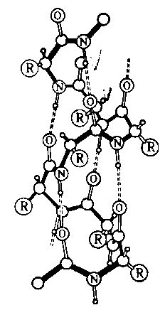 -спираль, которая образуется в результате скручивания полипептидной цепи за счет водородных связей между группами: ―C― и ―N―