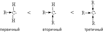 Этот ряд соответствует ряду относительной стабильности алкильных радикалов: