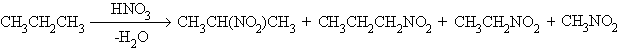 При нагревании алканов с разбавленной азотной кислотой в жидкой фазе (М.И.Коновалов) происходит образование нитросоединений.