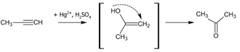 В присутствии солей ртути алкины присоединяют воду с образованием ацетальдегида (для ацетилена) или кетона (для прочих алкинов)