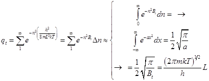 Трансляционная сумма состояний на 1 степень свободы поступательного движения