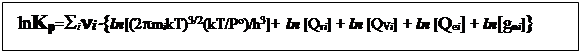 DrGo = -RTln Kp=-NAkT ln Kp=Sni×moi , откуда получается выражение логарифма константы равновесия. Это компактная форма