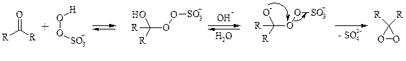 Эпоксидирование алкенов следует рассматривать как синхронный, согласованный процесс, в котором не участвуют ионные интермедиаты типа гидроксильного катиона ОН+. Другими словами, эпоксидирование алкенов представляет собой процесс син -присоединения одного атома кислорода по двойной связи с полным сохранением конфигурации заместителей при двойной связи.[8]