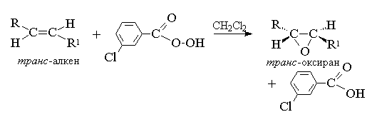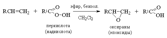 Ациклические и циклические алкены при взаимодействии с перкислотами (надкислотами) RCOOOH в неполярной, индифферентной среде образуют эпоксиды (оксираны), поэтому сама реакция носит название реакции эпоксидирования.