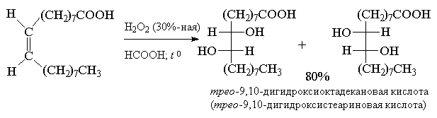 1)с сохранением углеродного скелета молекулы; так протекают эпоксидирование и гидроксилирование двойной связи,приводящее к образаванию вицинальных транс- или цис-гликолей.