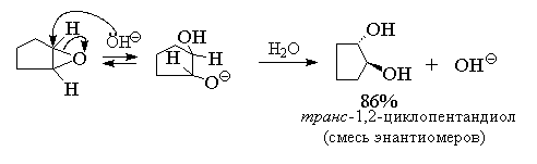 Раскрытие оксиранового кольца, катализируемое основанием, также приводит к образованию циклических транс -гликолей.